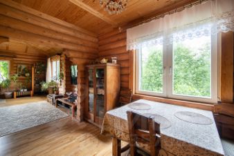 В отделке использовались только качественные дорогостоящие материалы. На окнах деревянные стеклопакеты с резными наличниками, дубовые межкомнатные двери. Напольное покрытие: паркет, кафельная плитка, сосновая доска. В спальнях для утепления пола использован северный мох, обладающий антисептическими свойствами. Установлены система теплый пол, фильтры многоступенчатой очистки воды.