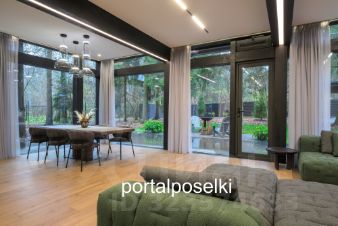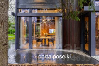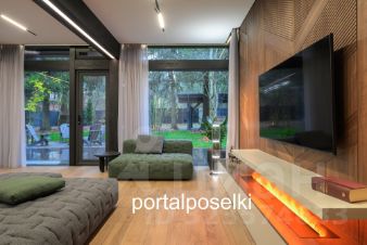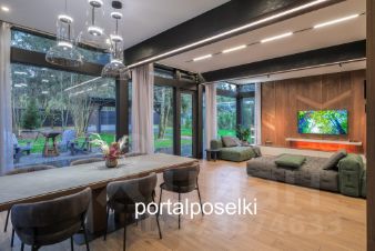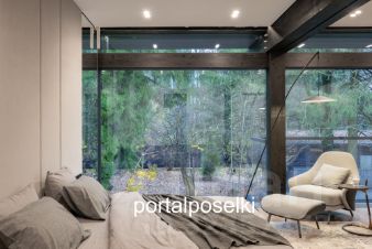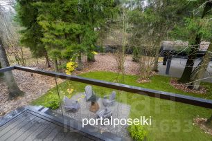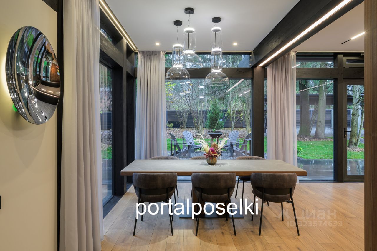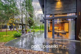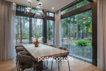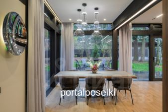 Forest Villa природная жемчужина на рынке Рублевки! Абсолютно новый уникальный дом площадью 325 кв.м, построенный по немецкой технологии фахверк на участке 15,4 сотки с вековыми елями и дубами в тихом лесном поселке в 26 км от МКАД по Рублево-Успенскому шоссе. Уникальный природно-парковый дизайн с использованием инсталляций из кортена с подсветкой, авторская роспись стены, объединяющая интерьер гостевой спальни/кабинета с плодоносящей яблоней затейливой формы за стеклянной стеной.