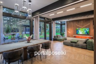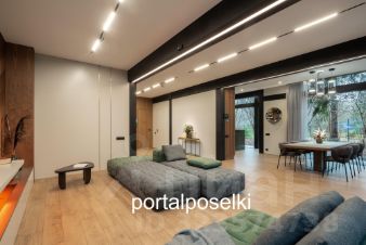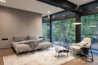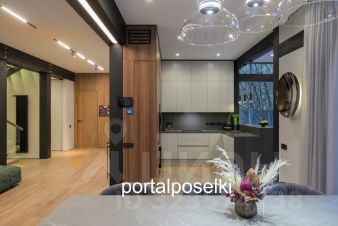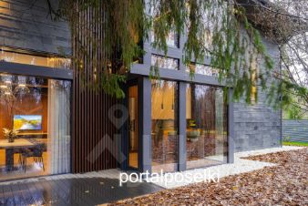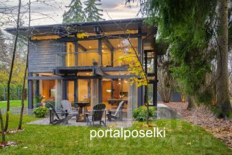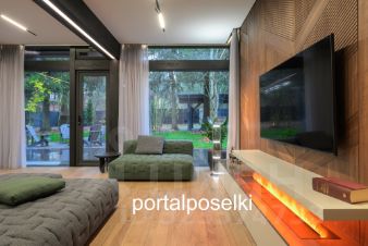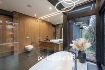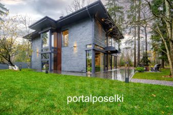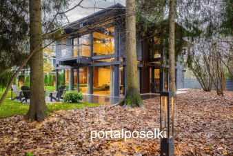 Forest Villa природная жемчужина на рынке Рублевки! Абсолютно новый уникальный дом площадью 325 кв.м, построенный по немецкой технологии фахверк на участке 15,4 сотки с вековыми елями и дубами в тихом лесном поселке в 26 км от МКАД по Рублево-Успенскому шоссе. Уникальный природно-парковый дизайн с использованием инсталляций из кортена с подсветкой, авторская роспись стены, объединяющая интерьер гостевой спальни/кабинета с плодоносящей яблоней затейливой формы за стеклянной стеной.