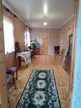 В доме большой коридор,кухня,изолированная комната одна на первом,одна большая на втором этаже, есть комната с лестницей- зона отдыха.Отапливается при необходимости электрическими конвекторами.( они в каждой комнате) Пластиковые стеклопакеты,хорошего качества.Утепление стен минватой 50мм.Сам домик обшит качественным сайдингом, сделана линевка, домик заходи, живи и наслаждайся свежим воздухом.