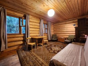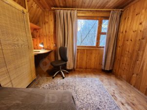 Дом 1997 года постройки, оформлен как жилой (можно прописаться), два этажа. Полностью готов для летнего проживания. Бревенчатый сруб, фундамент столбчтато-ленточный, крыша металлическая. Отопление - электрокамины в каждой комнате. Первый этаж: кухня-гостиная и спальня. Второй этаж: две спальни. Входные двери железные, на всех окнах раздвижные металлические решётки на замках и ставни.