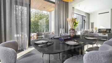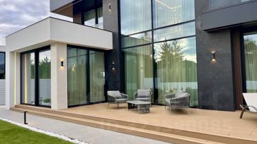 Новый современныйготовый коттеджв охраняемом благоустроенном посёлке с удобным выездом на платную дорогу и Рублево-Успенское шоссе. 20 минут до МКАД в любое время. Тихое место в окружении леса. Участок с ландшафтным дизайном, освещением, дренаж, автоматический полив. Центральные коммуникации, включая водопровод, бытовую и ливневую канализацию. Электричество 25 кВт, интернет - оптоволокно. Два этажа,четыре спальные комнаты,пять санузлов, четыре гардеробных, СПА-зона с мини бассейном и сауной, гараж на две а/м, блок для персонала, постирочная. Панорамное остекление, просторные патио и балконы. Высота потолков 1-го этажа - 3,40 м, 2-го этажа - 3,20 м.Наружные стены из полнотелого кирпича с утеплением, фундамент и перекрытия - ж/б. Фасад вентилируемый. Достойные соседи, низкие коммунальные платежи.