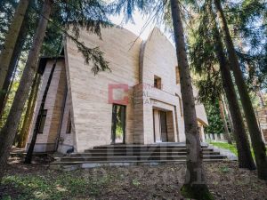 ID 537871. КП Лебединое озеро. Дом 830 кв.м на лесном участке 20 соток в охраняемом коттеджном посёлке. Дом выполнен по индивидуальному архитектурному проекту, фасад отделан натуральным камнем- травертином. Проектом дома предусмотрен лифт, просторная гостиная с камином, четыре спальни, кабинет.
