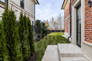 На участке завершён ландшафтный дизайн: вымощены дорожки, уложен газон, установлено освещение. Перед домом предусмотрена парковка на 2 автомобиля.