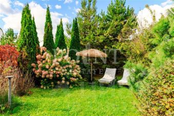Также на участке расположен чудесный гостевой домик с камином, зона барбекю, зона релаксации. Ландшафт участка включает как декоративные парковые растения, так и плодовый сад.