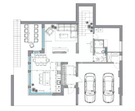 На 1 этаже вас встретит шикарная кухня-гостиная — это сердце вашего дома, где можно собираться всей семьей и радушно принимать гостей. Простор и свет, а также современная техника делают времяпрепровождение удобным и pleasant.