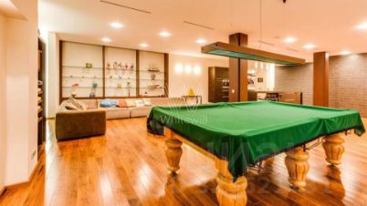 1-й уровень: прихожая, гардероб, санузел, столовая со вторым светом, кухня, гостиная с камином; Зона СПА: санузел, просторный хамам, сауна, бассейн глубиной 3 метра, солярий, джакузи, переход в спортивный зал.