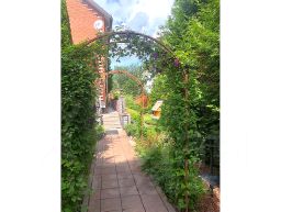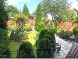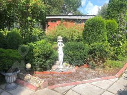 Участок правильной прямоугольной формы с незаметным наклоном в сторону улицы, с дренажом вдоль заборов с соседями. Ухоженный, более 30 хвойных растений, немного плодовых кустарников и растений.