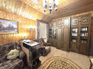 Потолки: первый этаж и санузел на втором этаже натяжной французский потолок, второй этаж вагонка.