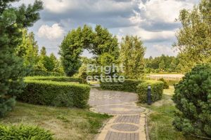Участок площадью 16,5 соток полностью благоустроен: ровный газон, хвойные посадки по периметру для приватности, минималистичный ландшафт, гармонирующий с архитектурой дома.