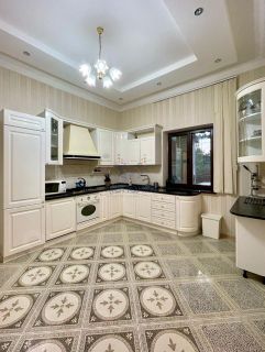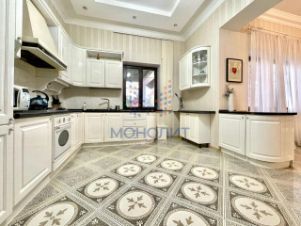 В доме выполнен дизайнерский ремонт из высококачественных материалов, потолки 3,5 метра, 7 балконов. В доме централизованные коммуникации: газ, свет, канализация, собственная скважина.