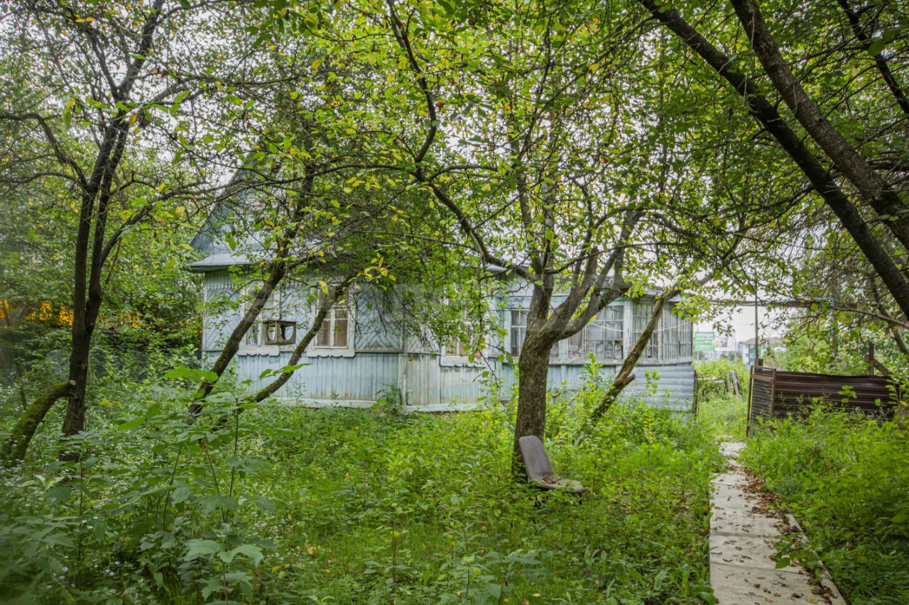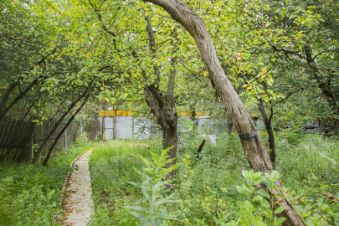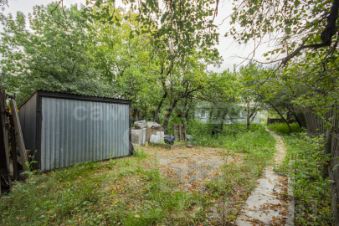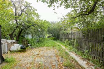Участок огорожен металлическим забором единого городского стиля и индивидуальным деревянным.