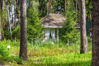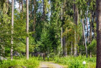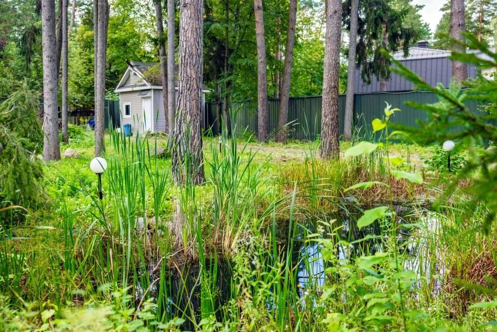 Почти полгектара лесного массива редкой красоты, где вековые корабельные сосны, высотой 35-40 метров, создают живую зелёную крышу. При въезде на участок открывается прекрасный пейзажный вид с поляной и декоративным прудиком, основной дом - стоящий в глубине участка - органично скрыт от глаз деревьями, мощенные дорожки с системой уличного освещения - по периметру всего участка. Кроме основного дома, на участке расположена барбекю беседка, мангальная зона, отдельно стоящий домик для персонала с гаражом. Сам участок правильной прямоугольной формы, соседи только с двух сторон.