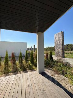 Предлагается к приобретению стильный одноэтажный коттедж общей площадью 206,5 кв.м., с тремя изолированными спальнями, кабинетом, тремя санузлами, просторной кухней-гостиной, зоной СПА, эксплуатируемой кровлей и верандами, расположенный на земельном участке 6 соток со своей парковочной зоной на два автомобиля и открытой верандой.
