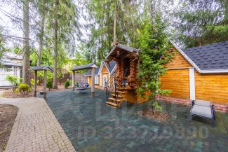 Отдельно обустроенная баня. Зона для мангала с крытой пристройкой, как в собственном загородном ресторане. Гараж на 2 автомобиля.И основной дом. На первом этаже: гостиная, кабинет с гардеробной, кухня, с/у.