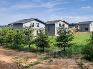 Территория поселка закрытая, охраняемая. Перспектива: строительство домов по типовым проектам в разных вариантах расположения помещений. Рассматривается также застройка домов площадью от 200 кв.м. Планируется обустройство парковой зоны отдыха вокруг водоема, детской площадки. Покрытие дорог - асфальтная крошка.