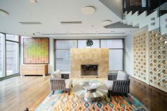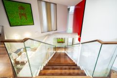 Верхние этажи предназначены для отдыха и сна, там расположены спальни, ванные комнаты. Первый этаж - место для уютных вечеров у камина или семейных ужинов в просторной гостиной, а может быть вы решите устроить вечеринку у бассейна со своими друзьями.