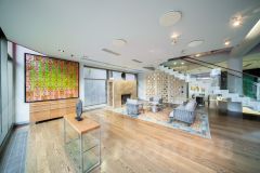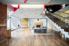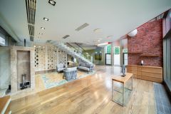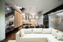Проект дома создавался архитектурным бюро и в процессе строительства архитектор проекта осуществлял авторский надзор за каждым этапом, чтобы реализация в камне не отличалась от бумаги. В отделке использованы эксклюзивные материалы, которые не только создают потрясающий внешний вид, но и приятны тактильно.