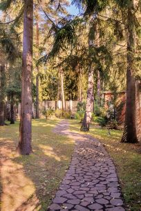 На участке выполнен ландшафтный дизайн, уличное освещение, проложены мощёные дорожки. Территория участка ровная,с дренажем,ливневой канализацией.