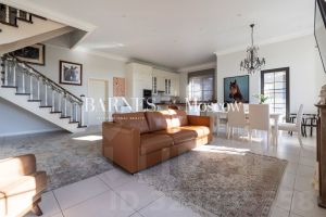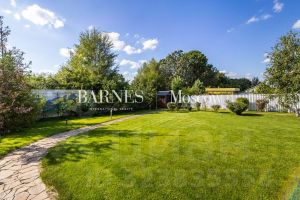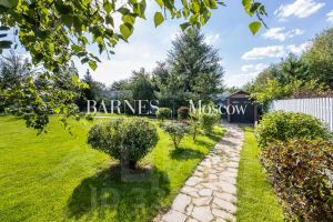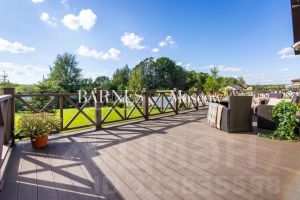 Дом с 5 спальнями, две из которых на первом этаже, .Просторная терраса с видом на лесной массив и зеленый участок , где высажены кусты сирени, красный клен, розовая вишня, крупномеры привезенные из Сибири, плодовые деревья.