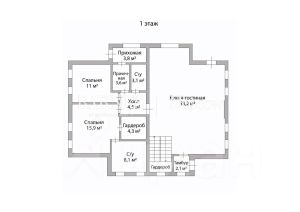 Второй этаж: две спальни, кабинет, помещение для хранения, ванная комната.