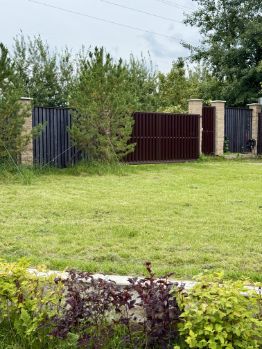 На просторном участке выполнен ландшафтный дизайн, участок правильной формы, засеян газоном. Вдоль забора высажены туи и ели. По периметру дома установлено уличное освещение. У дома оборудована площадка на 2 автомобиля.