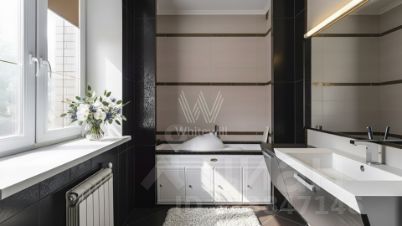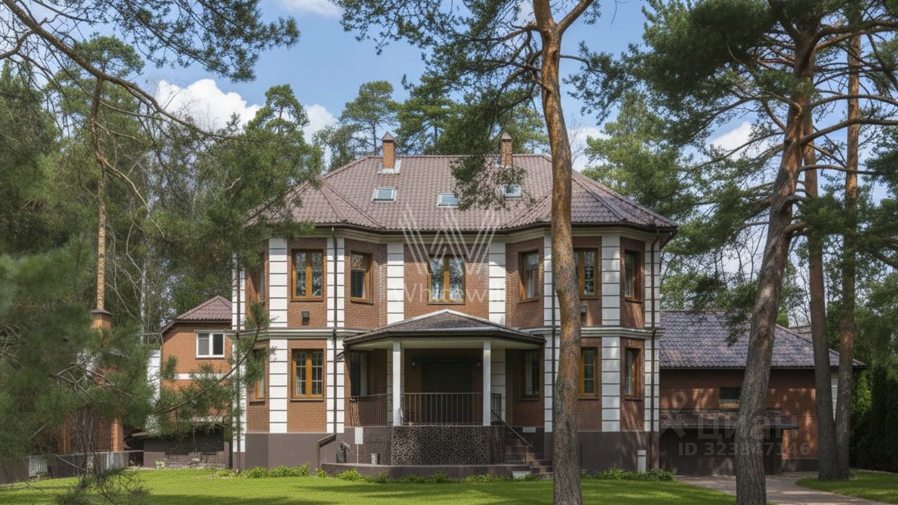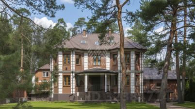 Функциональная планировка включает 7 спален, гостиную, кухню, столовую с выходом на террасу, кабинет, бильярдную, бар, тренажерный зал и сауну. На участке, где растут взрослые хвойные деревья, реализован ландшафтный дизайн: выполнен дренаж, засеян газон и выложены дорожки. Для отдыха с близкими предусмотрена беседка с камином и зоной барбекю. Удобно размещенный гараж на 2 машины дополняет загородный дом.