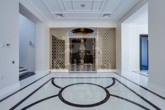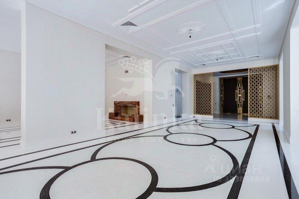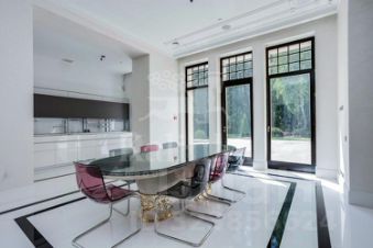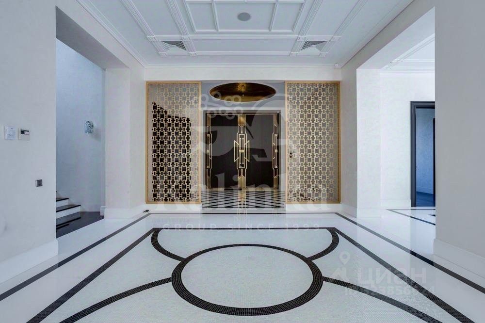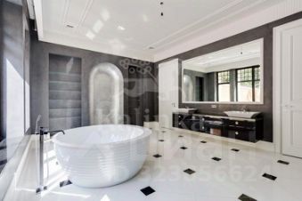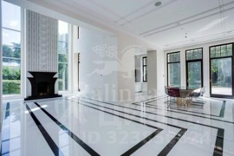 Первый этаж: холл, гардеробная, гостевой санузел, кухня-столовая, две гостиные с каминами, гостевая спальня с санузлом, СПА-зона: бассейн 16 метров с противотоком, зоной джакузи и водопадом, тренажёрный зал, соляная комната, сауна, душевая, санузел, гараж на 4 автомобиля. Из СПА-зоны и гостиной есть выходы на просторную террасу с зоной барбекю.
