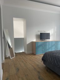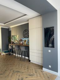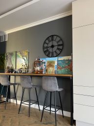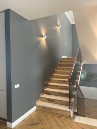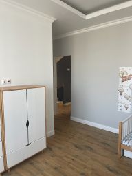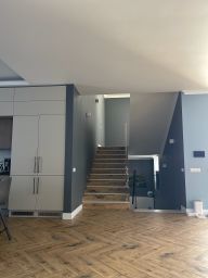 Гараж с автоматическими воротами, вмещает до 2х автомобилей (в зависимости от размера + 4 парковочных места возле дома), гараж при желании можно переделать в дополнительную комнату благодаря теплым водяным полам в гараже и во всём доме.