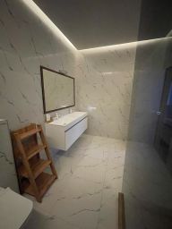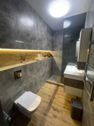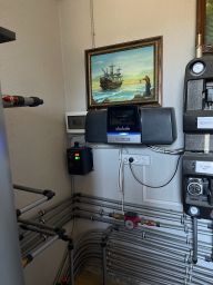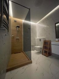 Автоматическое управление подачи воды с комфортной температурой во всем доме. Установлена продвинутая, современная онлайн система управления Bosch Buderus Logomatic 5000 для управления газовым конденсационным котлом Buderus GB-162 мощностью 70квт., нержавеющий бойлер (не требующий обслуживания) на 300 л. от американской компании Wiessmann модель Vitocell 300-V обеспечивает горячее водоснабжение, что позволяет всей семье одновременно с комфортом пользоваться тёплой водой.
