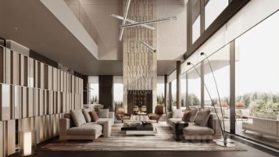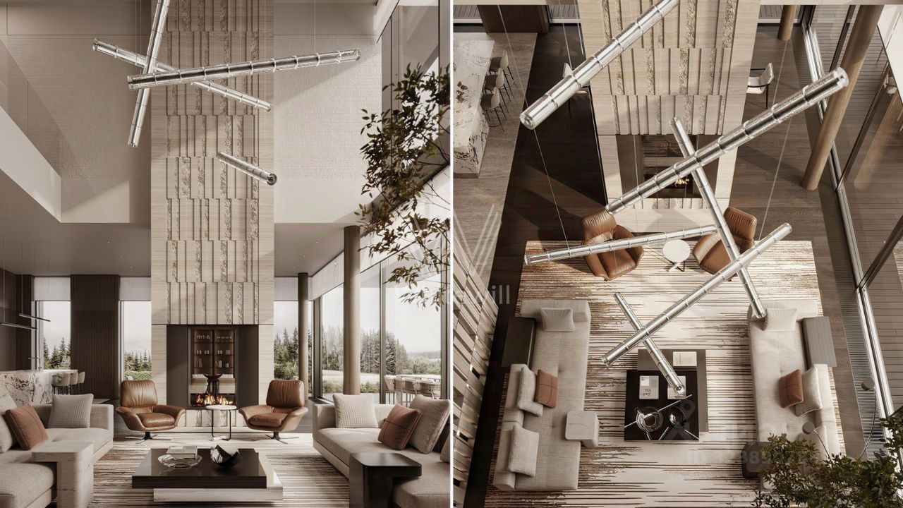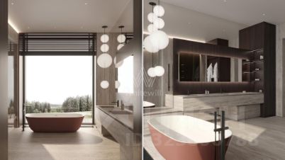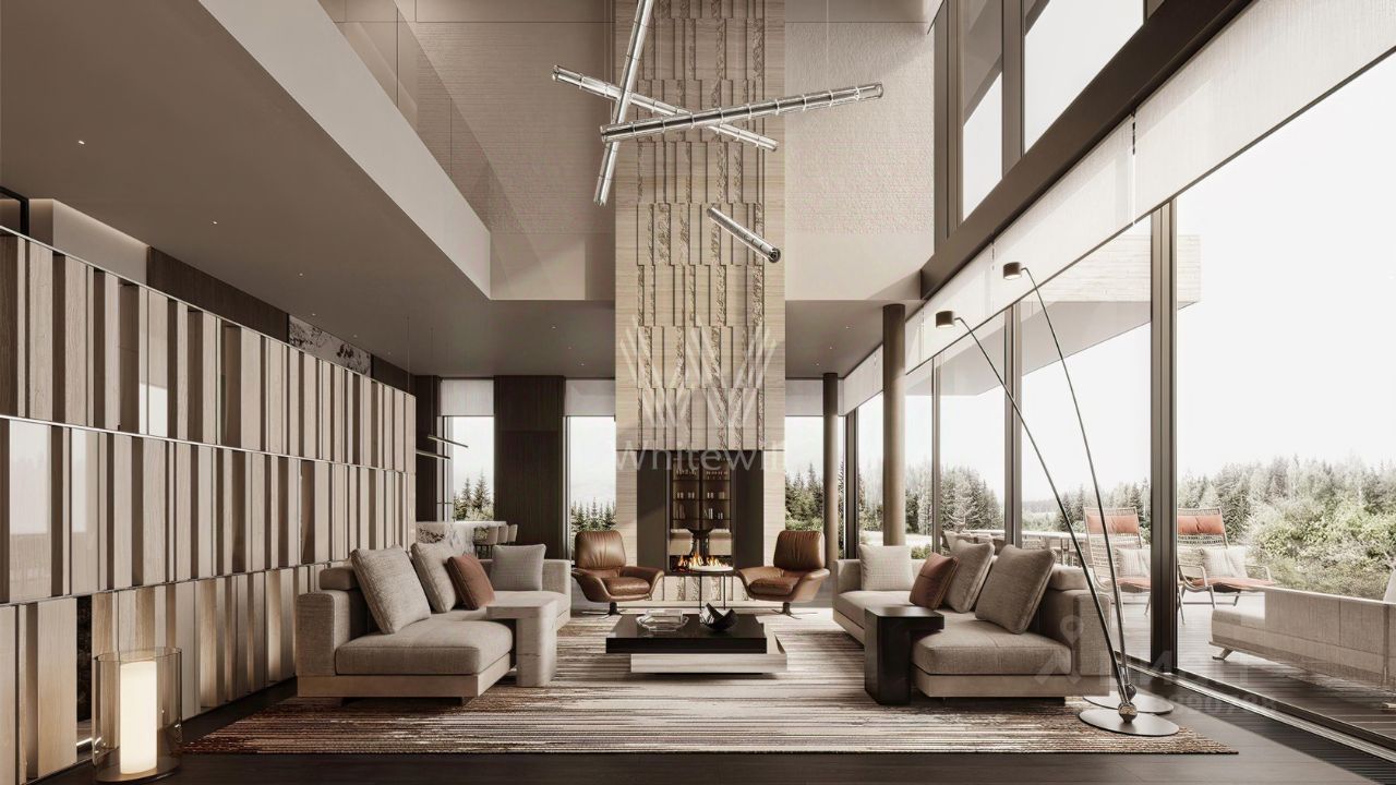 Планировка включает просторную кухню-гостиную-столовую, кабинет, 5 спален с гардеробными, 4 из которых имеют выход на индивидуальные террасы, SPA-зону с бассейном, сауной и хаммамом, а также квартиру для персонала и гараж на 2 машины. На эксплуатируемой крыше можно разместить ротанговую мебель и спроектировать уютное место для отдыха с барбекю.