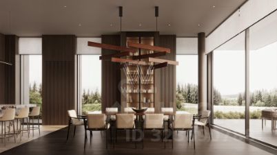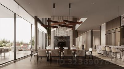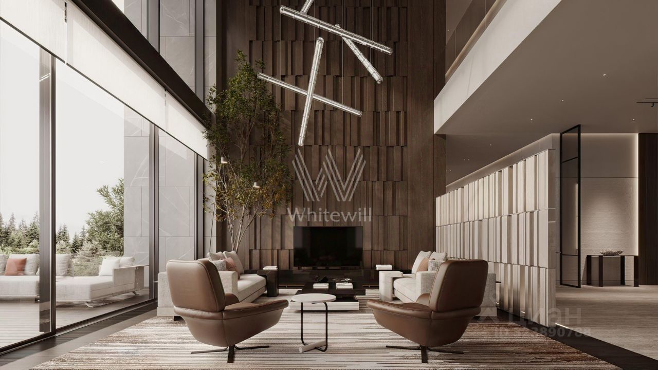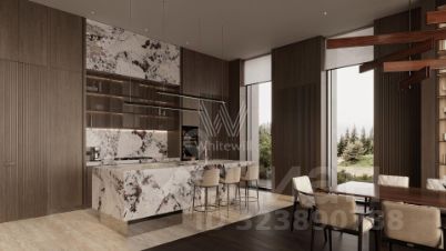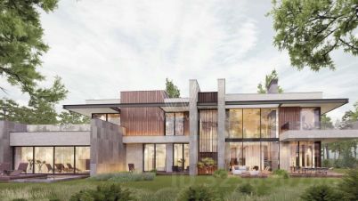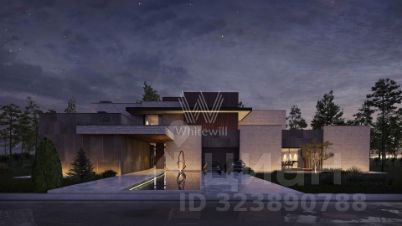 Николино. Загородная резиденция площадью 1181 м² расположена на участке 35 соток. Современный фасад с панорамными окнами, оформленный в сдержанных серых тонах, облицован доломитом, керамогранитом и панелями с фактурой дерева. Свободная планировка дома позволяет организовать пространство по собственному усмотрению. Дополнительно предусмотрена возможность реализации дизайн-проекта от застройщика.