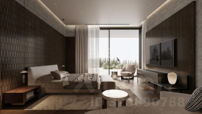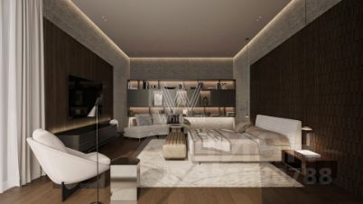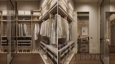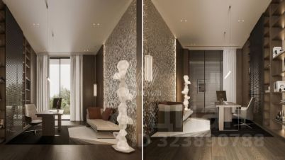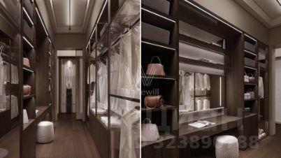 2-й уровень: холл, 3 спальни с гардеробными, санузлами и террасами, кладовая, мастер-спальня с 2-мя гардеробными, санузлом и террасой.