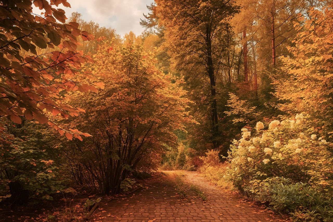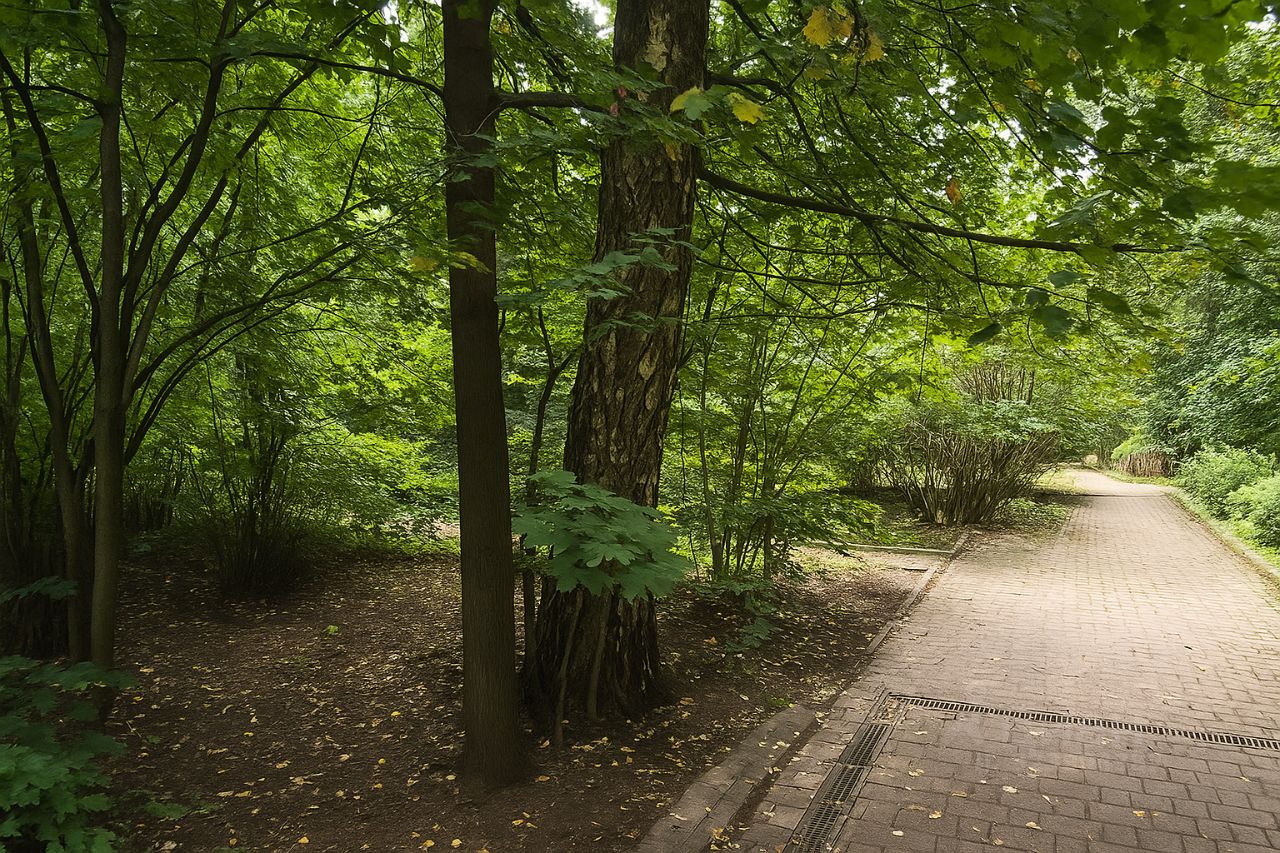 Великолепный живописный ландшафт с вековыми соснами, лиственными деревьями и кустарниками.