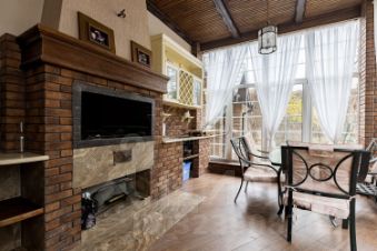 1-й этаж: прихожая, гостиная с камином, кухня-столовая, с/у, зимний сад.