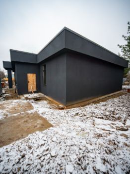 Фасады: утеплены каменной ватой и покрыты колерованной штукатуркой по технологии "мокрый фасад". Это не только эстетично, но и практично — вы легко сможете перекрасить дом в любой желаемый цвет.