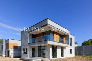 Новый дом под отделку 363 кв.м на участке 11,2 сотки в КП Зайцево парк. Современный дизайн фасада, выполненный из камня, планкена и декоративной штукатурки. Балкон и крыльцо выполнены из керамогранита. Центральные коммуникации, электричество 15 кВт.