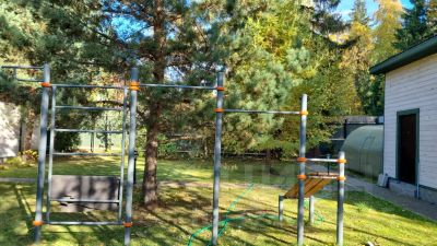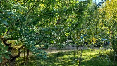 Благоустроенный зелёный участок, плодовые деревья и кустарники, парники, собственная спортивная площадка.