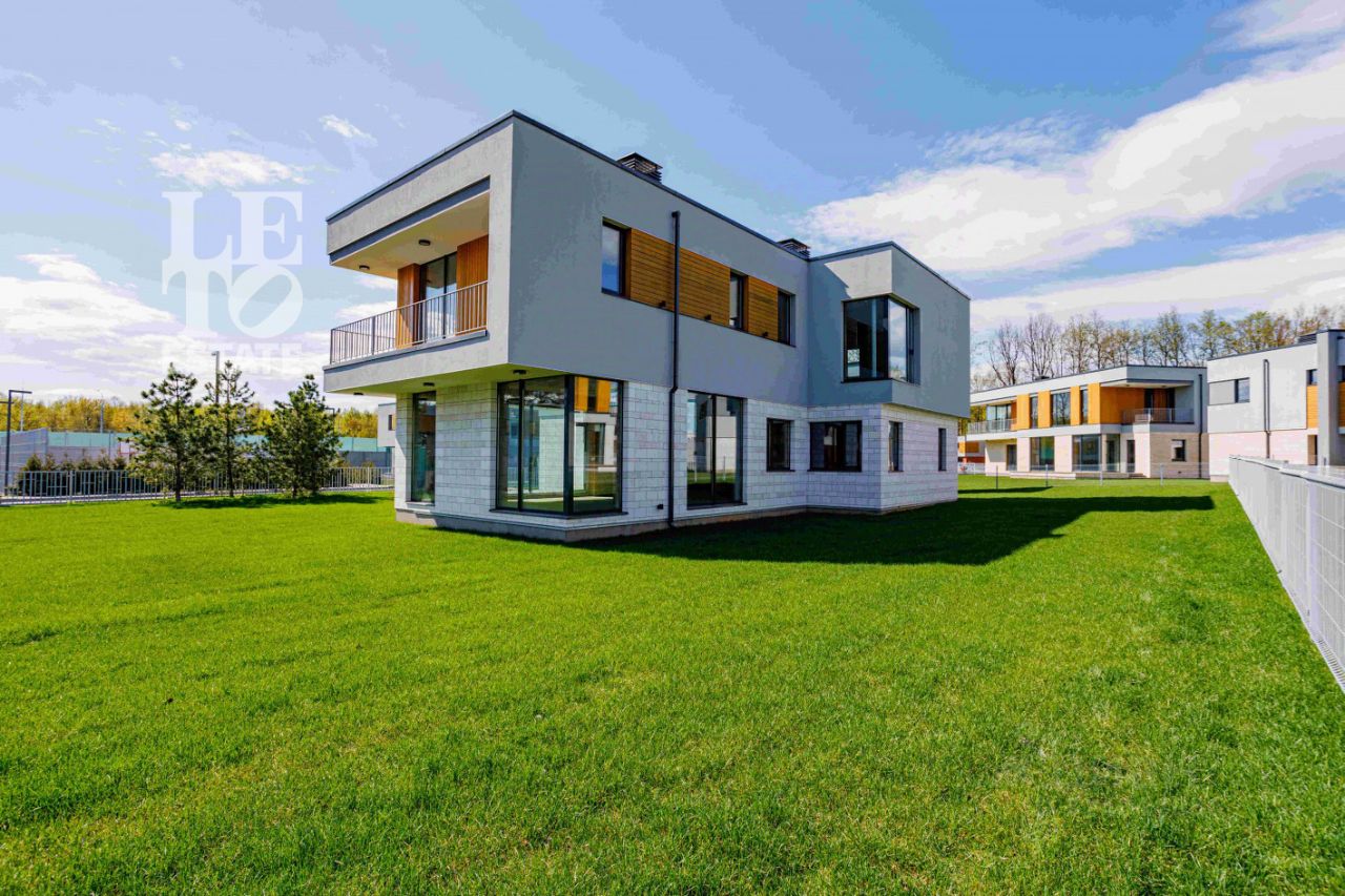 В двухэтажном доме есть пять спален с личными гардеробными и санузлами, а также невероятно просторная гостиная. Панорамное остекление наполняет дом солнечным светом и ощущением простора. Уютная кухня с выходом на террасу. Все коммуникации - центральные: газоснабжение, электроснабжение, холодное водоснабжение, канализация, в т. ч. и ливневая.