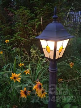 По всему участку установлено освещение декоративными фонарями на столбиках , управляется с пульта д/у.