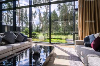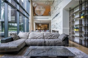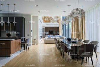 ID: 15052 В одном из самых респектабельных уголков РублёвоУспенского шоссе - в 6 км от МКАД - расположено уникальное домовладение "Obsidian House" на участке 142 сотки. Особняк площадью 2 100 м выполнен в современном стиле с подчёркнутой архитектурной пластикой: фасад облицован клинкером JANINHOFF, а дорожки по территории вымощены ручной формовой брусчаткой Klinkerwerke Muhr. Резиденция полностью готова к проживанию, подключена ко всем коммуникациям и представлена "под ключ" с эксклюзивной дизайнерской отделкой и мебелью ведущих брендов мирового уровня. Входная группа открывает пространство первого этажа: две гардеробные с мебелью Porada и Frato, холл и объединённая зона гостиная - кухня - столовая с панорамными видами на участок. Гостиная со вторым светом и потолками почти 10 метров, камином и видом на парк. Центральная стена оформлена итальянским мрамором в раскладке "бабочка", создающей скульптурный эффект. В интерьере - диван Budapest и консоль Guell от Baxter, журнальный стол Minotti Song, аксессуары Bosa, предметы Ulivi и Smania. Обеденная зона - стол Minotti Linha на 12 персон, светильники HENGE и Terzani. Кухня - Siematic, с техникой GAGGENAU, оформлена лаконично и функционально. Также на этаже: кабинет с библиотекой (Emmemobili, Rugiano), гостевая спальня с ванной и гардеробной (Porada, Rugiano), две гостевые ванные комнаты и полноценный SPA-комплекс с бассейном, сауной, хаммамом и тропическим душем. Оконные системы SCHUCCO и двери RIMADESIO задают архитектурную точность, а стеклянный лифт добавляет драматургии пространству. Приватная зона второго этажа выстроена вокруг просторного холла с зонами для отдыха и библиотекой. Также, здесь расположены шесть спален - каждая с собственной гардеробной и санузлом. Один из мастер-блоков занимает площадь 158м и имеет отдельную лестницу, ведущую напрямую с первого этажа, обеспечивая абсолютную приватность. Внутри - просторная спальня, кабинет, ТВ-зона, гардеробная и ванная комната с видом на лес. Второй мастер-блок - полноценный сьют с собственной гостиной, рабочей зоной и спальней, который занимает площадь 83м. Интерьеры оформлены мебелью Rugiano, RIMADESIO, Minotti, Frato и Porada, свет - Flos, Foscarini, Tom Dixon. Планировка позволяет разделить этаж на приватные и семейные зоны, сохраняя ощущение масштаба и уединения. На третьем уровне - терраса-гостиная на уровне крон деревьев. Пространство можно использовать как приватный этаж для старшего ребёнка - с собственной гостиной, гардеробной, спальней и постирочной - или как полноценный гостевой блок для близких. Также предусмотрена зона для тренажёрного зала. В оформлении интерьера используются бренды: Rugiano, Minotti, Frato, Porada, Aromas del Campo. На цокольном уровне сосредоточена хозяйская инфраструктура: кинотеатр, винная комната, камерная гостиная с камином и баром, бильярдная и гостевой санузел. Для мебели и аксессуаров в хозяйской зоне использованы решения Meridiani, Frato и Baxter; декоративные объекты и вазы - Bosa. Здесь же расположены профессиональная кухня Angelo Po с конвектоматом на 256 программ и полным набором оборудования. Рядом - спальня для повара, две кладовые, прачечный комплекс, котельная, серверная и техпомещения бассейна. Материалы отделки - натуральный мрамор, керамогранит GRANITI FIANDRE и дубовый паркет; инженерные решения обеспечивают высокий уровень комфорта и сервиса. На территории - отдельно стоящий гараж на 4 машины с помещением для охраны и санузлом (165,1 м) и хозяйственный блок 