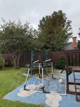 Участок площадью 18 соток обустроен по первоклассному ландшафтному дизайну. Уместилось и своё футбольное поле с автополивом и Беседка с мангалом., и детская площадка и Теплица с автоматическим проветриванием . и Просторный СПА-комплекс с сауной и бассейном.