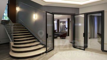 номер объекта: М1018. Продается дом на Минском шоссе, в 10 км. от МКАД, в коттеджном поселке Довиль. Дом 2-х уровневый, монолит, площадью 639 м.кв., участок - 21 сот. Есть гараж (2 м/м). Все коммуникации центральные. Готов к проживанию. На первом этаже: гостиная-столовая, кухня, терраса, холл, котельная, сауна, 2 с/у, прихожая, постирочная, комната персонала с с/у, гараж. На втором этаже: две спальни с с/у и гардеробной, балкон, спальня с с/у, балкон, веранда, тамбур, холл, две веранды, балкон, кабинет. В мансарде: бильярдная, техническое помещение, холл, студия, с/у, гардеробная, гостевая спальня с с/у.