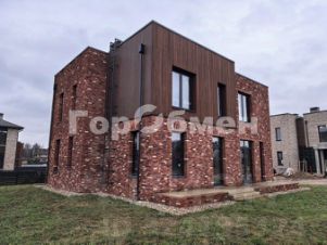 Площадь 2-этажного дома 259,2 кв.м. Стильный коттедж Berry с двумя парковочными местами воплощает эстетичную лаконичность и функциональность. Фасад дома выполнен в кирпиче ручной формовки природного терракотового оттенка и планкене светлого цвета.