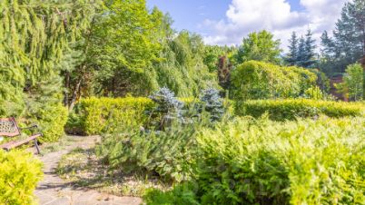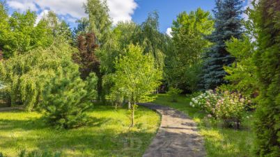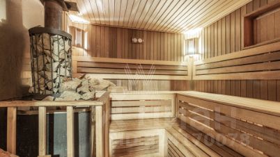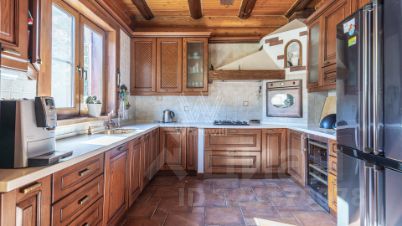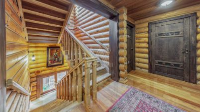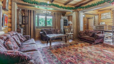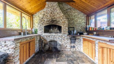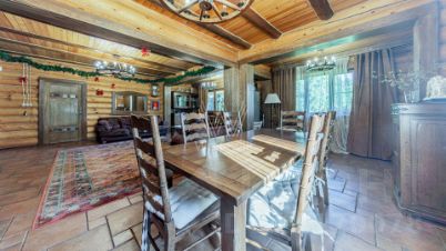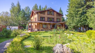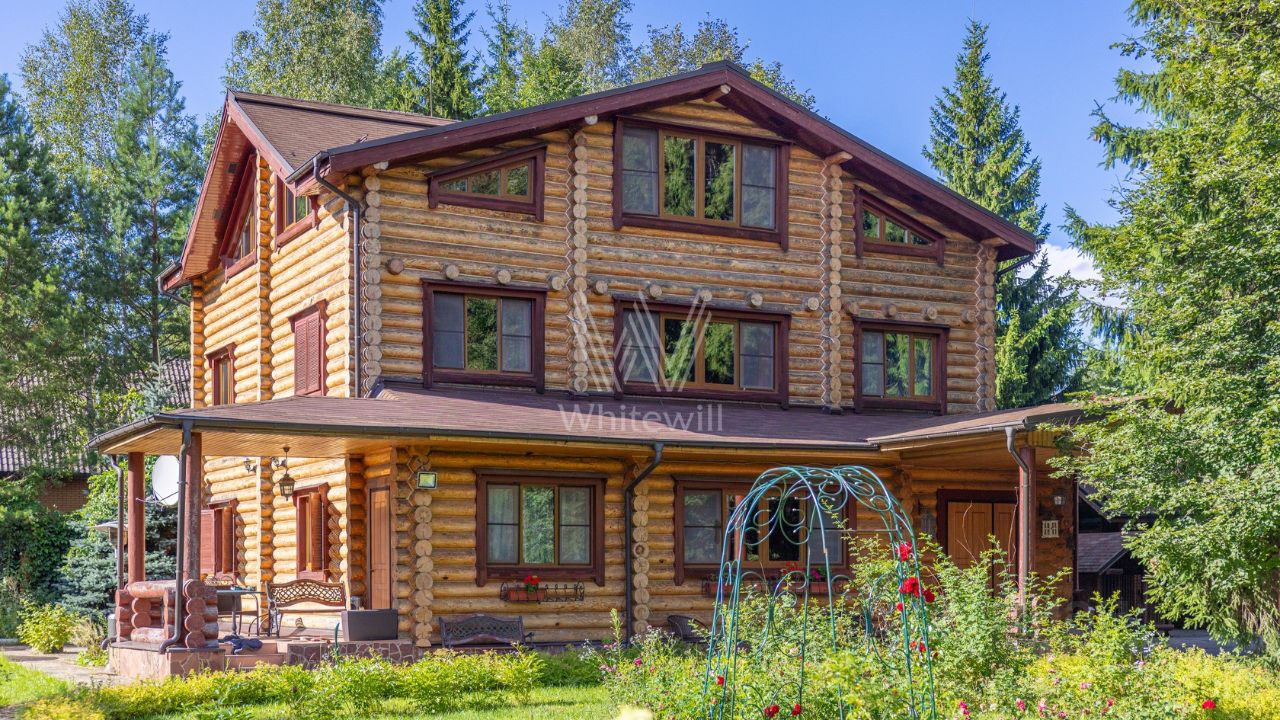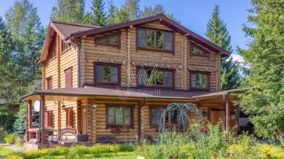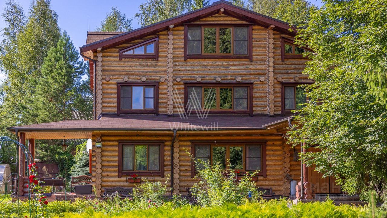 Зелёная роща-1. Загородный дом площадью 352 м² построен на просторном полевом участке 40 соток. Фасад здания выполнен из бревна в стиле "шале". В отделке интерьера сохранена фактура дерева, создающая атмосферу тепла и уюта. В резиденции разместили 9 спален, гостиную, кухню-столовую и бильярдную. Рядом расположены баня с комнатой отдыха и санузлом, гараж на 3 машины с квартирой для персонала и котельной, а также закрытая беседка с мангальной зоной. На участке выполнен ландшафтный дизайн, вымощены дорожки, высажены кустарники и цветы.