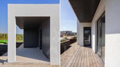 Планировка включает просторную кухню-гостиную, мастер-спальню с собственной гардеробной, две дополнительные спальни и сауну. Особой гордостью дома стала эксплуатируемая кровля, где можно установить джакузи и шезлонги, обустроить патио для приятных вечеров или создать зелёный оазис под открытым небом. Благоустроенная парковочная зона обеспечивает удобное размещение автомобилей, а продуманный ландшафт с деревьями и аккуратными дорожками формирует гармоничную среду для жизни.