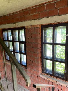 Электричество на входе 14,6 кВт, напряжение трехфазное, 380 В. Газ подведен к границе участка, отдельный вентиль. Недостроен септик и вода не заведена в дом (все трубы проложены к дому).