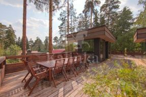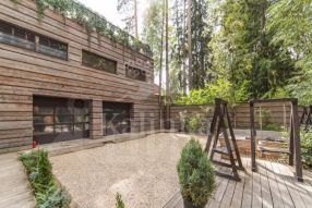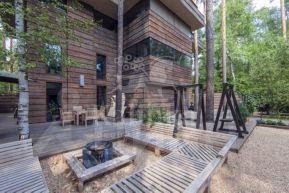 Предлагается дом 700 кв.м стиле Фрэнка Ллойда Райта в окружении соснового леса на территории Жуковки Академической. В доме эксплуатируемая кровля, которая позволяет наслаждаться свежим хвойным воздухом. Участок зонирован, есть зона мангала и садовая мебель.