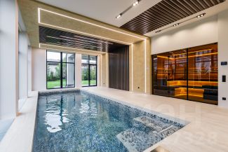 1-ый уровень: прихожая, холл, гардеробная, котельная, с/у, гостиная - кухня - столовая с выходом на террасу, вторая кухня, кладовая, гостевая спальня с с/у и гардеробной, СПА-зона: бассейн, сауна, душевые, с/у; гараж на 2 м/м;