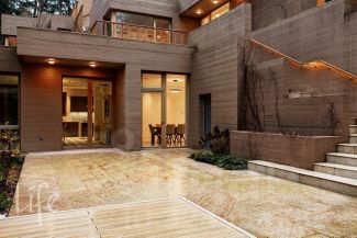 Интерьер в светлых, мягких тонах, со вкусом подобрана мебель и аксессуары. Гостиную украшает двухсторонний камин. Помимо гостиной камины установлены еще в кабинете и мастер-спальне.
